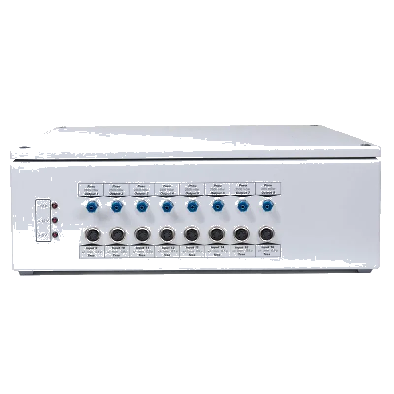 Modulares System zum Anschluss pneumatischer Messdorne und -rachen — Multiprozessorsystem mit digitaler Filterung von Luftschwingungen.